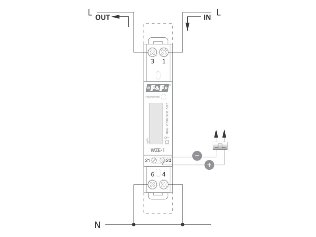 Jednofázový digitálny elektromer WZE-1 je určený k podružnému meraniu spotreby elektrickej energie samostatných spotrebičov alebo spotrebičov v skupinách. Elektromer je možné použiť aj na fakturačné účely, je certifikovaný podľa normy MID 2014/32/EU.