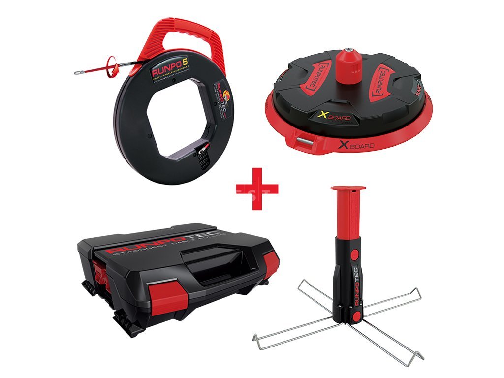 Profesionálny akciový set RUNPOTEC obsahujúci multifunkčný tŕň, odvíjačku káblov X BOARD 300, preťahovacie pero Runpo 5 (30 m) a praktický systémový kufor pre komfortnú prácu.