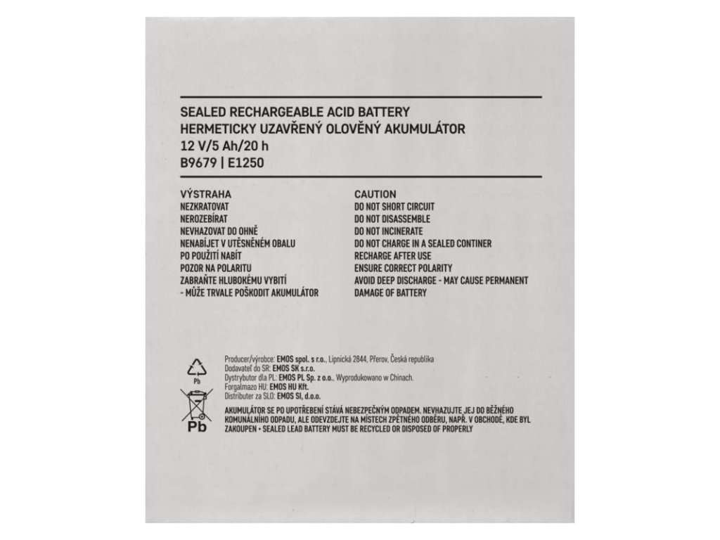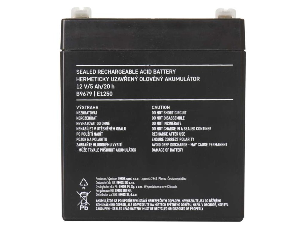 Bezúdržbový olovený akumulátor 12 V/5Ah, faston 6,3 mm - B9679