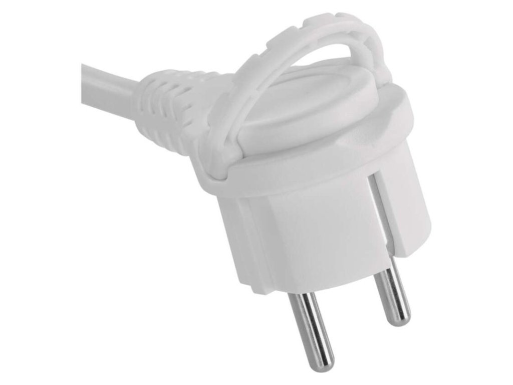 - Klasická vidlica tohto predlžovacieho kábla je uhlová a dizajnovaná na pevné zasunutie do sieťovej zásuvky. Zaujímavou inováciou je plastové uško, ktoré vyklopíte a s minimálnou námahou prívod zo steny vytiahnete.