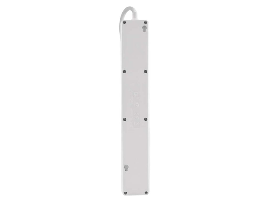 - Zásuvková lišta sa pokladá voľne na podlahu alebo stôl; z výroby neobsahuje vyvŕtané krížové oká určené pre zavesenie na vruty na stenu.