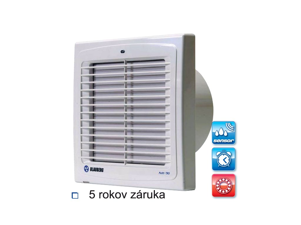 Ventilátor s hygrostatom, časovačom a žalúziou Blauberg Auto 125 H – 125mm (Ložiská)