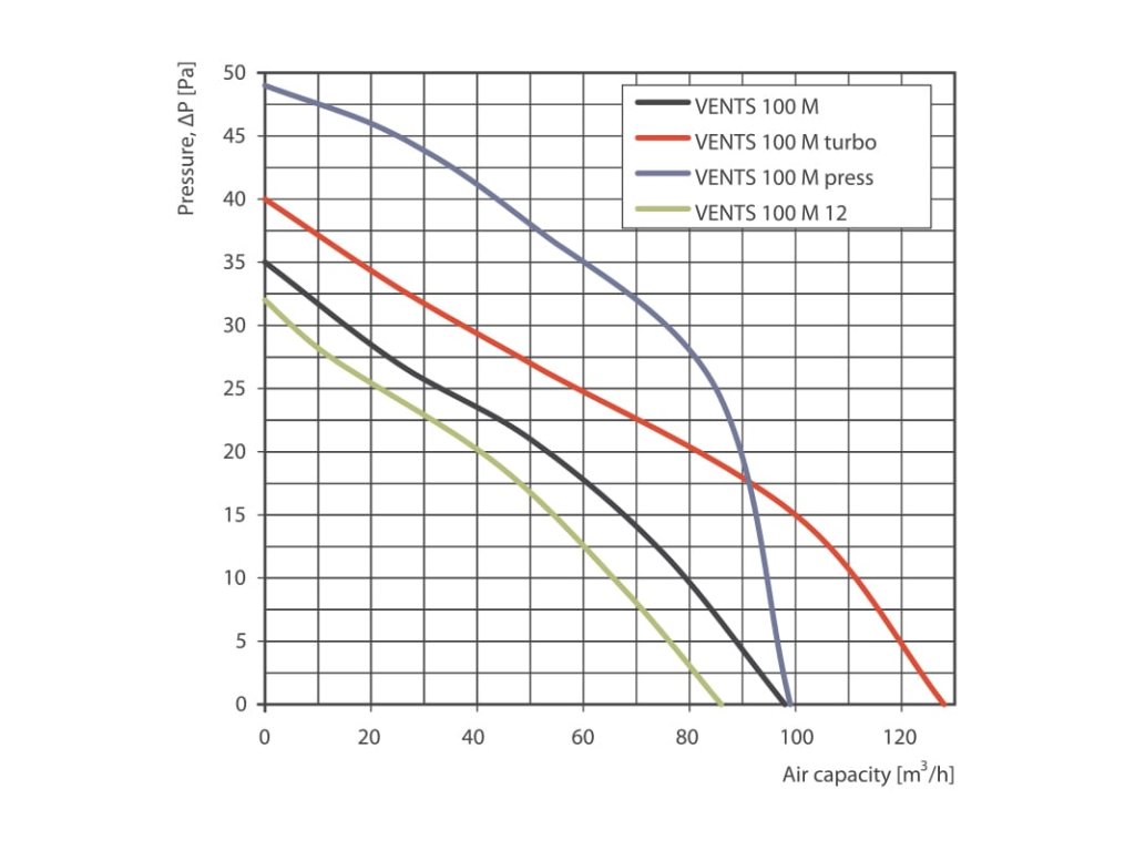 Axiálne ventilátory VENTS 100M turbo sú určené pre odvetranie WC, kúpeľní a iných bytových priestorov. Vzhľadom na ich parametre sa odporúča ventilátory používať v kombinácií s kratším vzduchotechnickým potrubím.