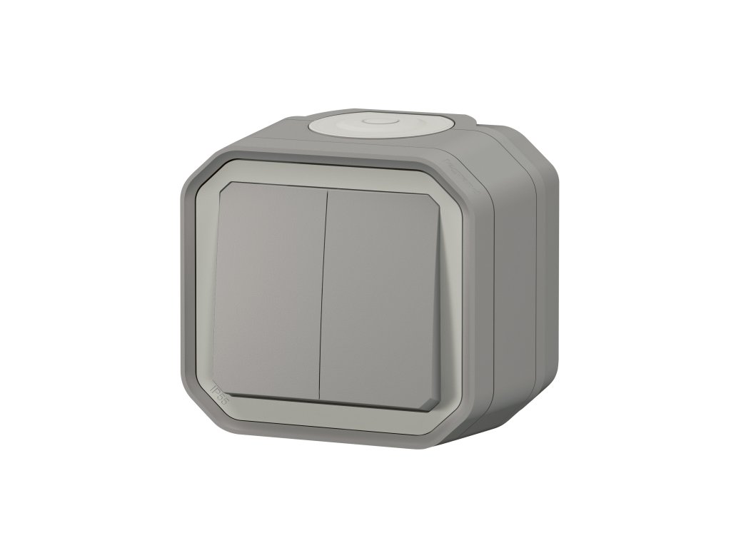 Kombinovaný prístroj Legrand Plexo 069715L je všestranný ovládací prvok, ktorý v jednom tele spája dve funkcie – slúži ako dvojitý striedavý prepínač alebo po vložení pružín ako dvojité tlačidlo. Na rozdiel od modulárnych prístrojov ide o kompletný výrobok, ktorý už obsahuje inštalačnú krabicu pre montáž priamo na omietku. Vďaka vysokému stupňu ochrany IP55 a odolnosti IK08 je tento prepínač navrhnutý pre bezpečnú prevádzku v garážach, dielňach a exteriéroch, kde bežné domové vypínače nepostačujú.