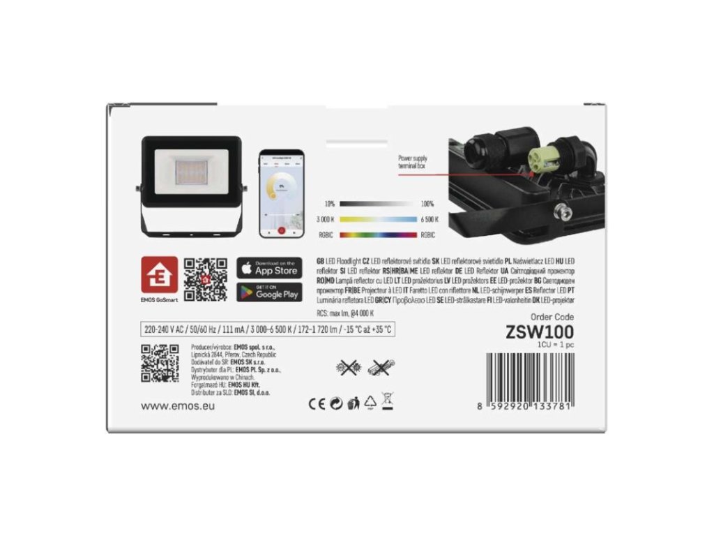 GOSMART LED reflektor 20W, 1720 lm, RGB+CCT, IP65 - ZSW100