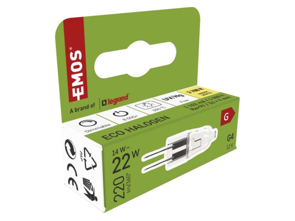 Halogénová žiarovka EMOS JC 14W G4 – Teplá biela, stmievateľná (12 V) - ZE0505A