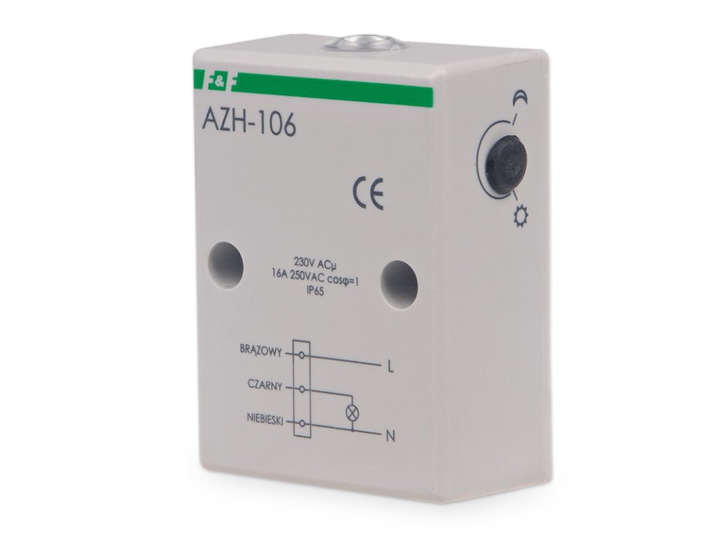 Súmrakový spínač AZH-106 sa používajú na automatické zapínanie osvetlenia ulíc, námestí, nádvorí, reklám a podobne. Pomocou svetelného senzoru zachytáva intenzitu prirodzeného svetla a na základe toho zapína a vypína pripojené osvetlenie.