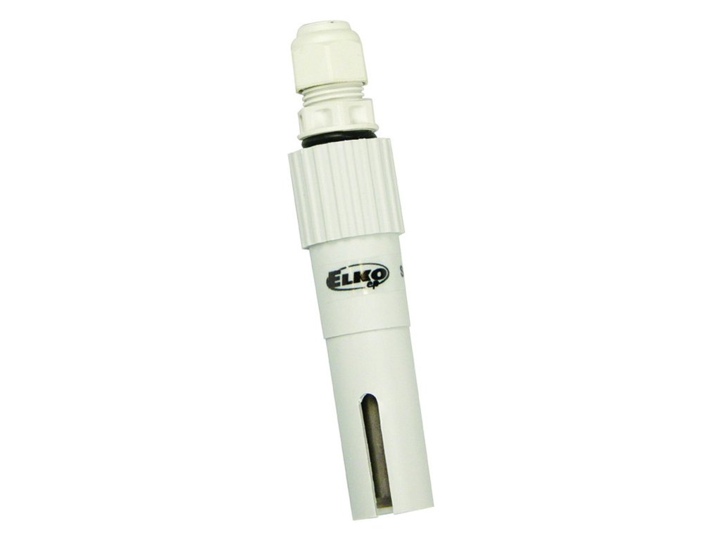 Nerezová jednopólová elektróda uložená v PVC kryte, určená pre zavesenie alebo upevnenie cez objímku na stenu nádrže.