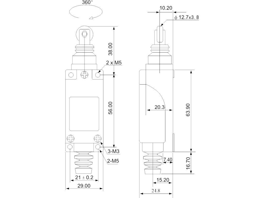 Expertný verdikt: Tracon LSME8112 je profesionálny koncový a polohový spínač pre priemyselnú automatizáciu. Tento model je špecifický svojím ovládacím prvkom – priamym kladkovým zdvíhadlom, pri ktorom je os kladky (rolničky) orientovaná pozdĺžne s telom snímača. Vďaka tejto konštrukcii je vynikajúci pre aplikácie s posuvným nájazdom (napríklad vačky na lineárnom vedení). S certifikovaným krytím IP65 a spoľahlivými 1xNO a 1xNC kontaktmi zabezpečí plynulé a trvácne ovládanie riadiacich obvodov.
