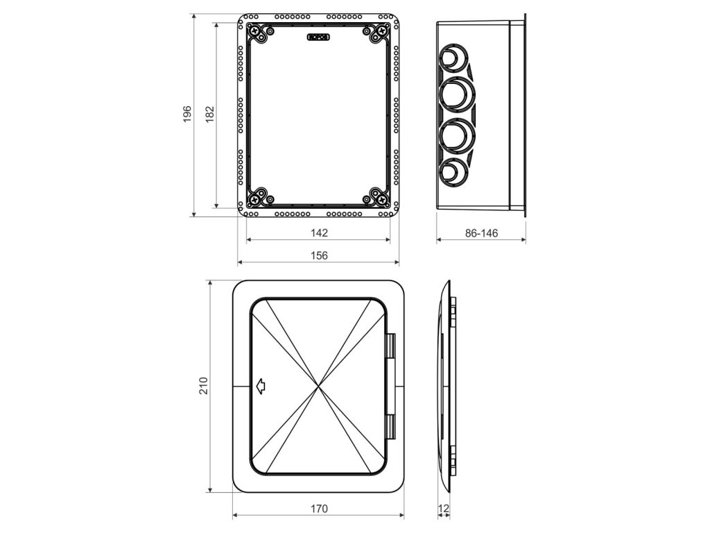 Krabica inštalačná KUZ-VO KB 196x156x80-140mm do zateplenia sivá