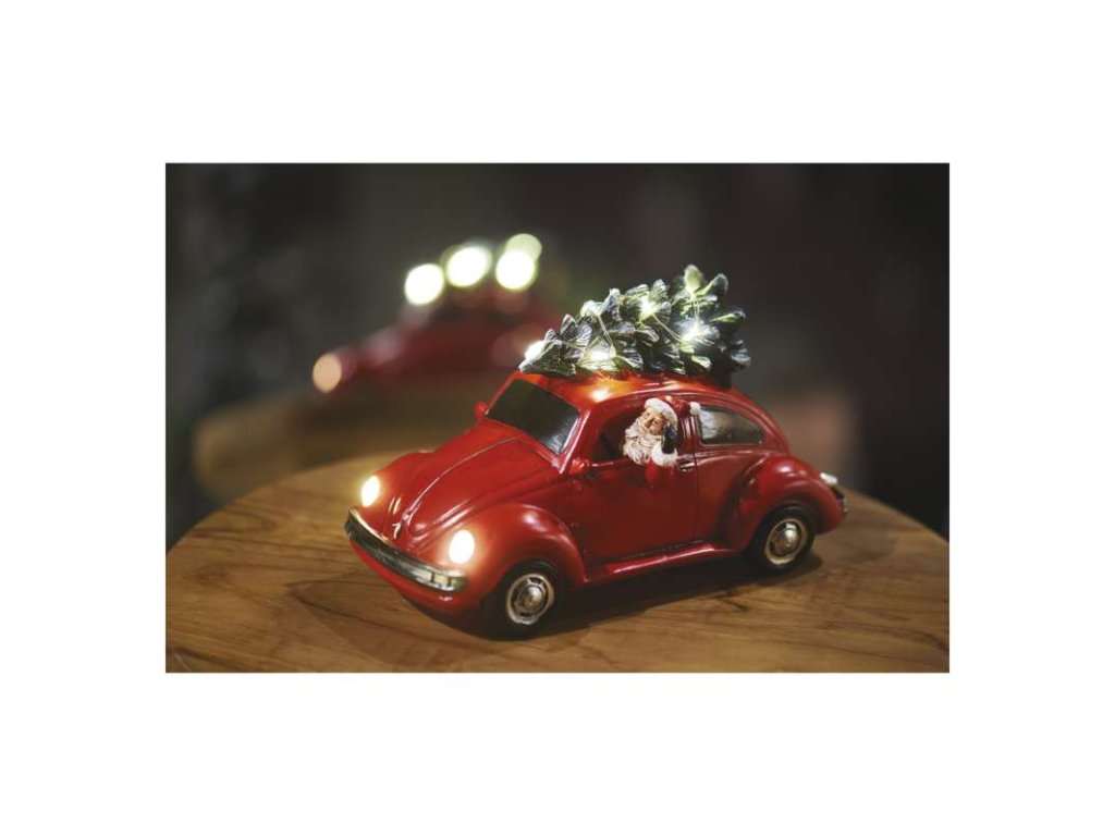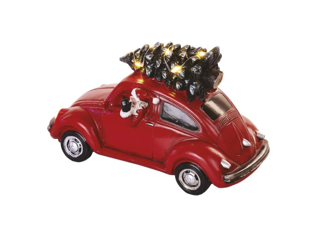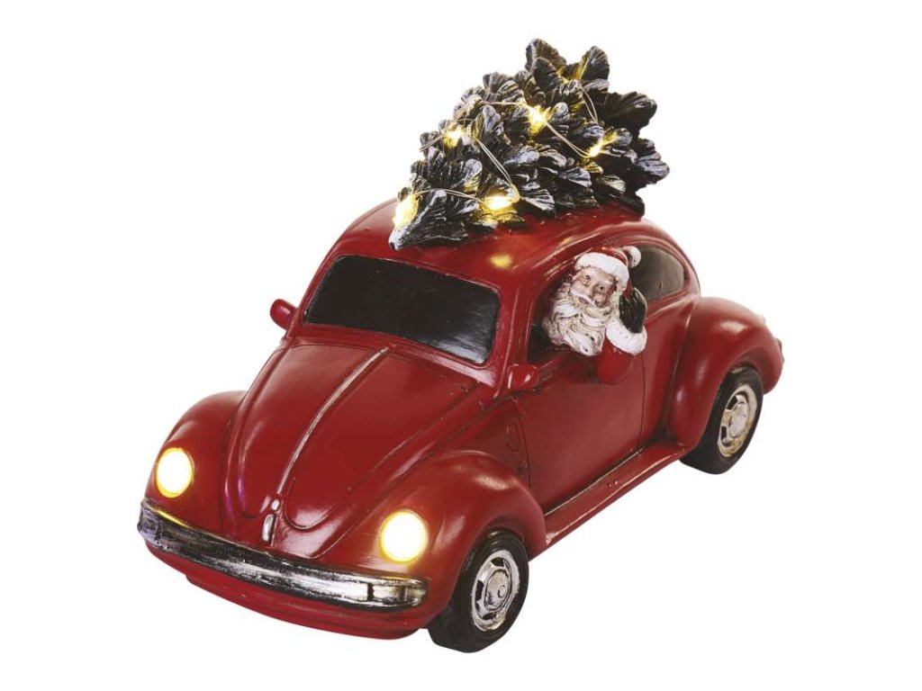 LED červené auto so Santom, 12,5 cm, 3x AA, vnútorná, teplá biela - DCLW08