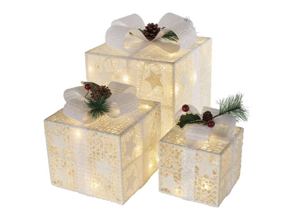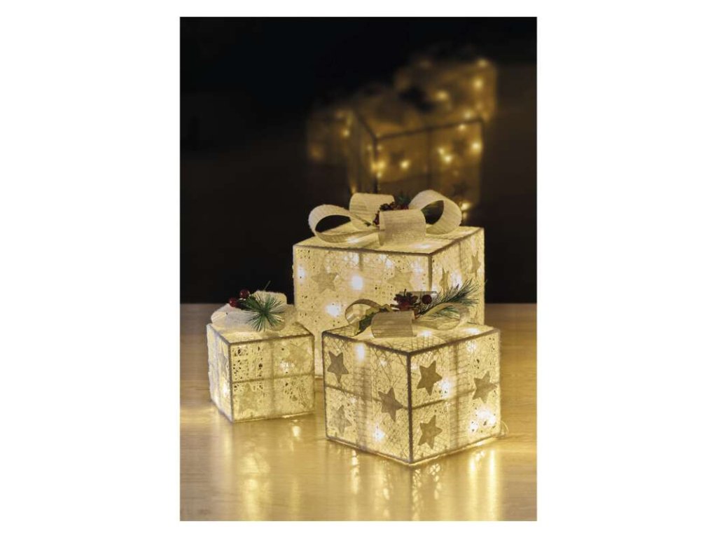 LED darčeky s ozdobou, 3 veľkosti, vnútorné, teplá biela - DCFC27