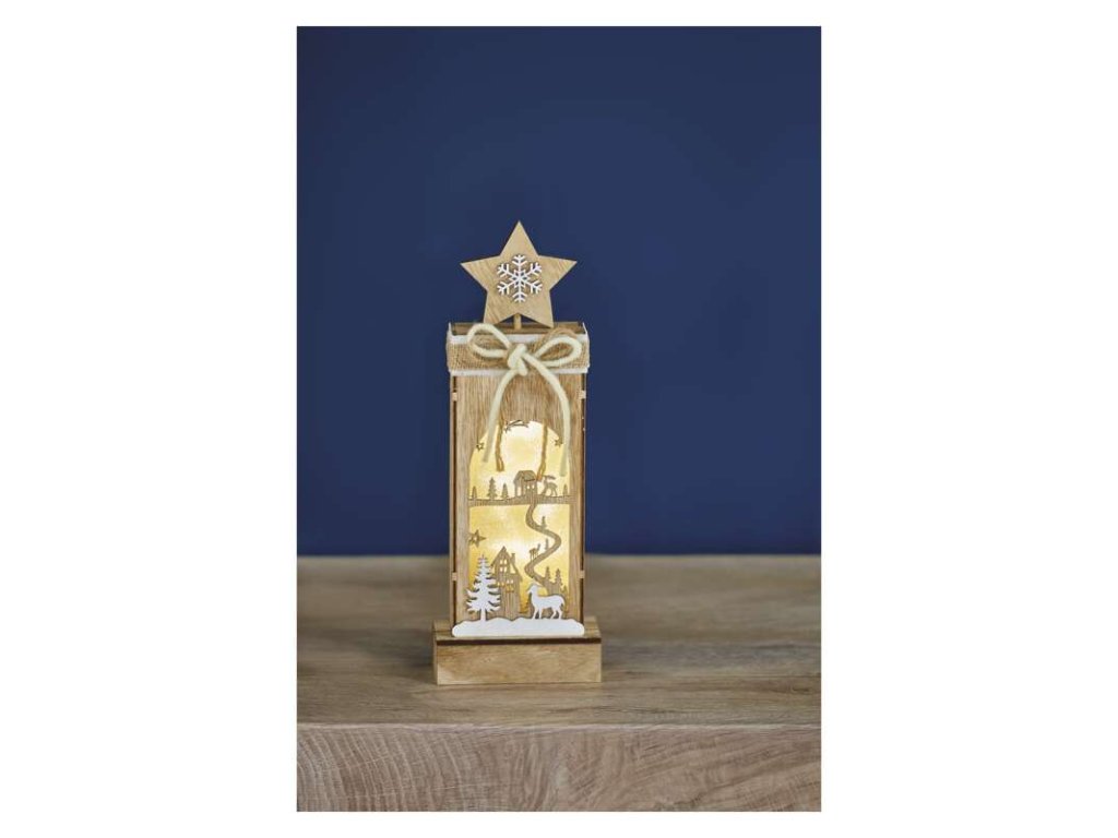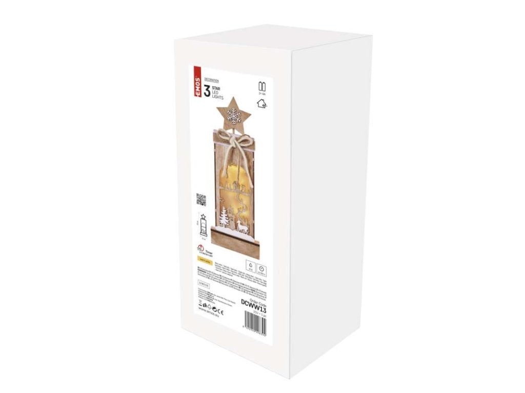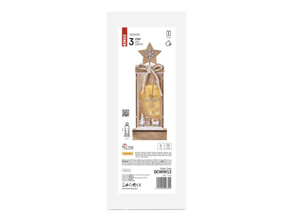 LED dekorácia drevená – zimná krajina, 34 cm, 2x AA, vnútorná, teplá biela, časovač