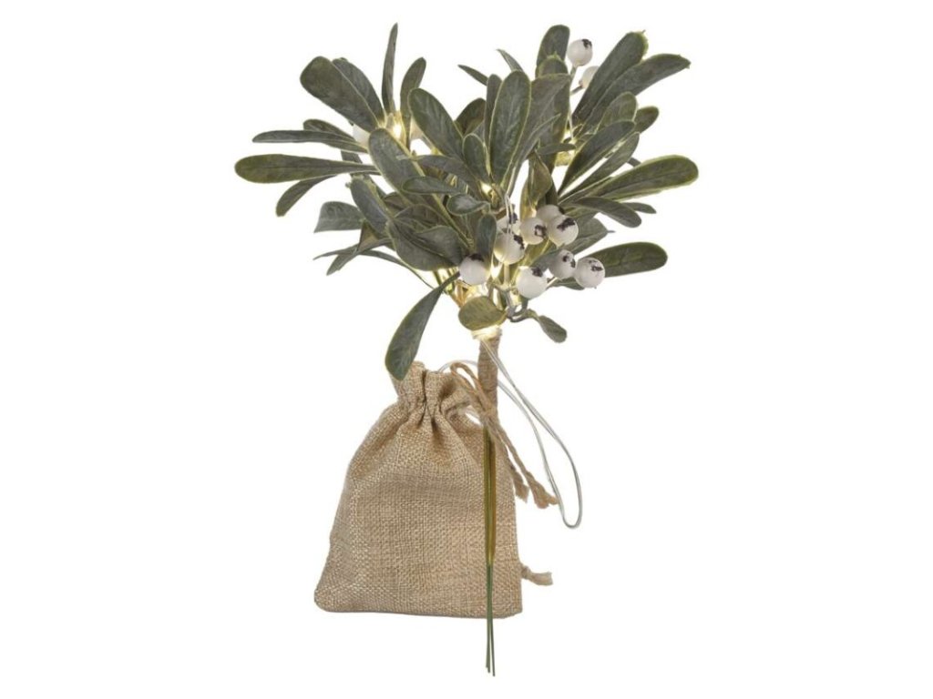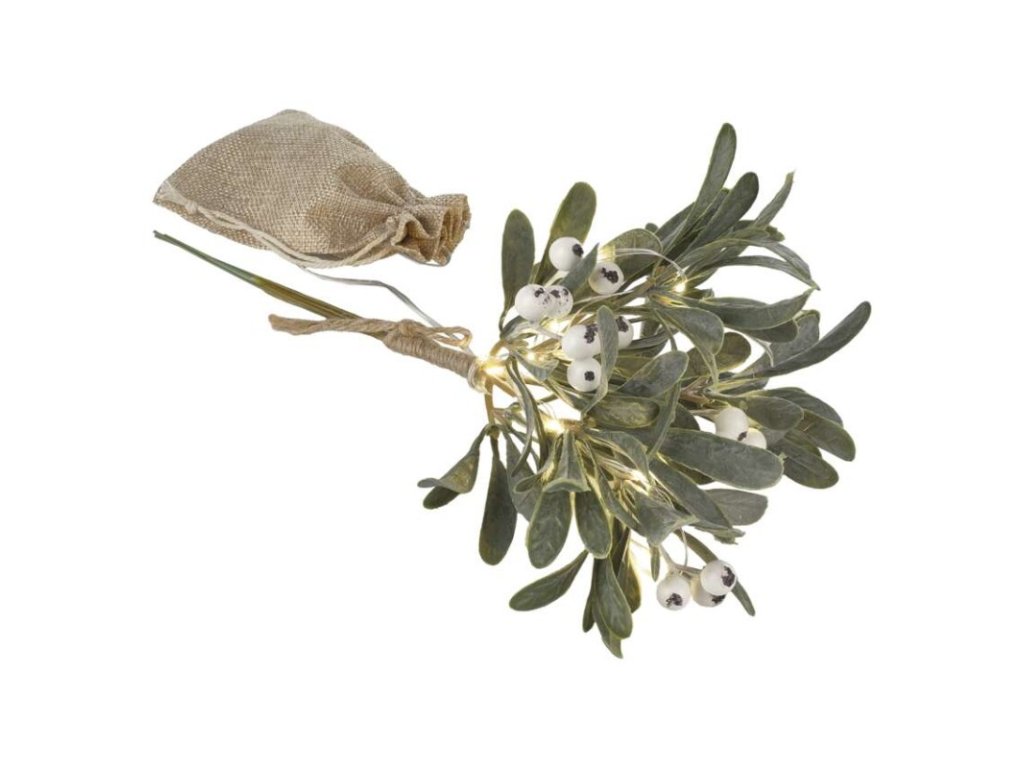LED dekorácia - vetvička jmelí, 2x AA, teplá bílá, časovač - DCTW29