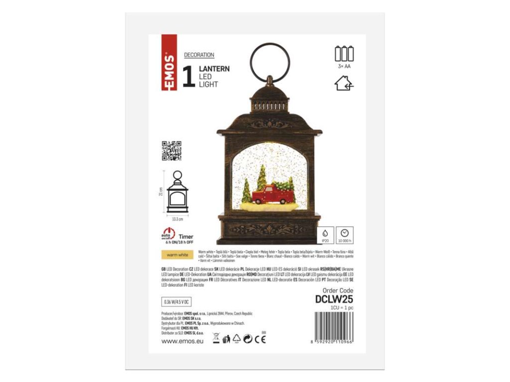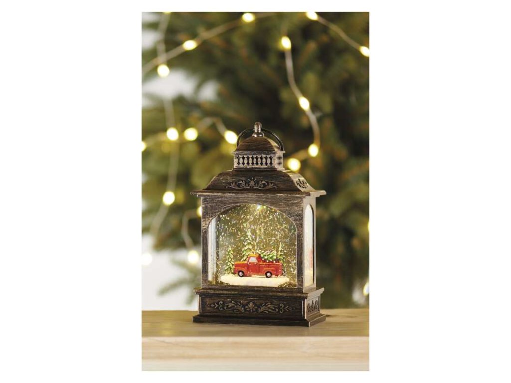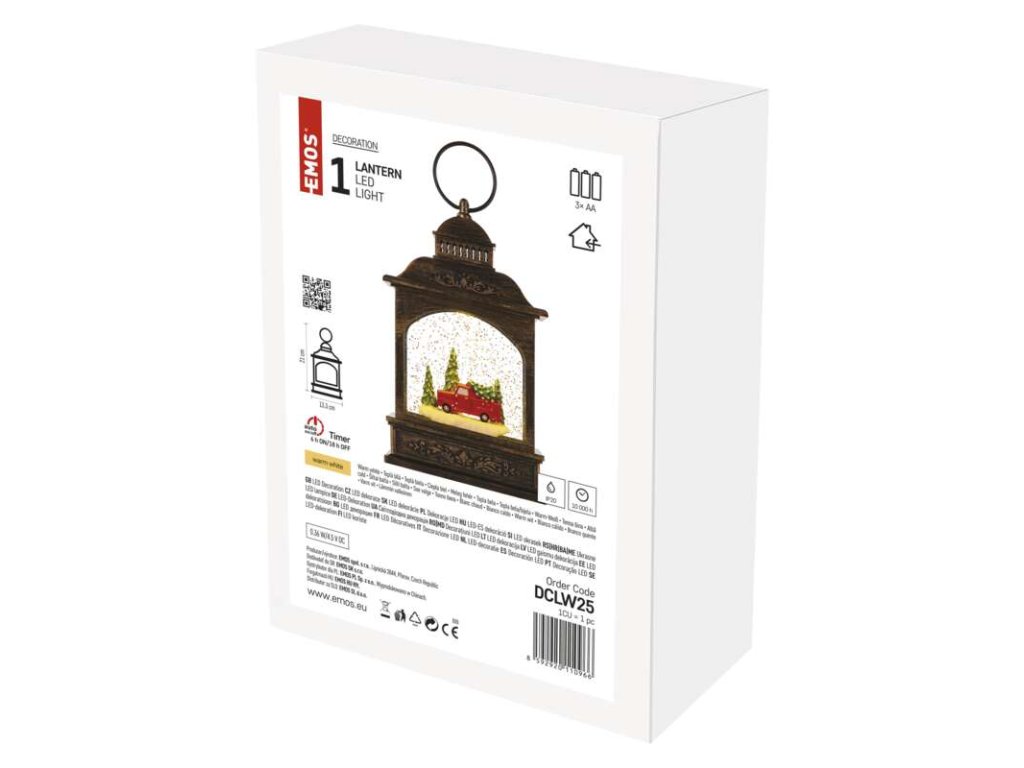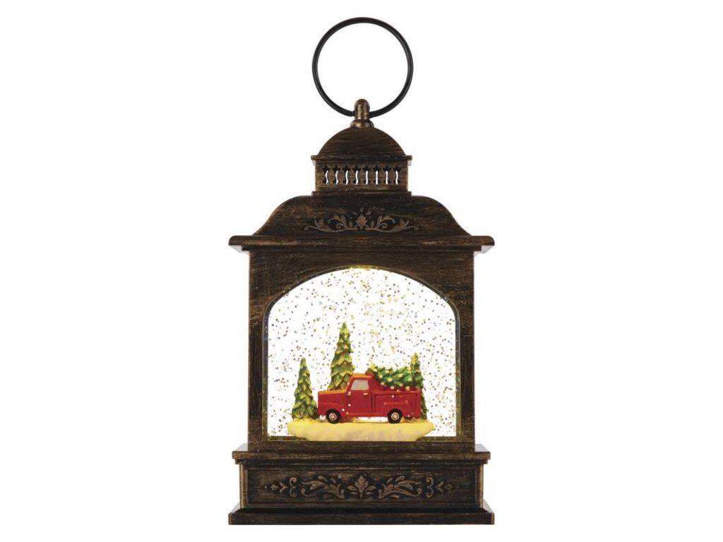 LED dekorácia vianočný lampáš s autom 21cm 3xAA, vnútorný, teplá biela, časovač - DCLW25