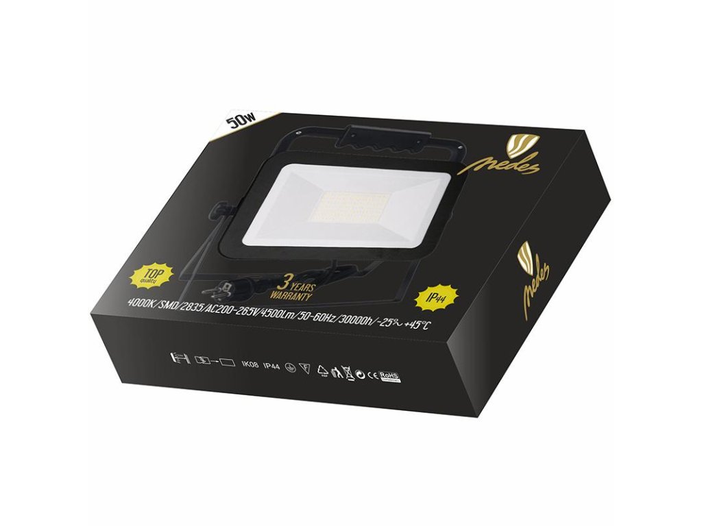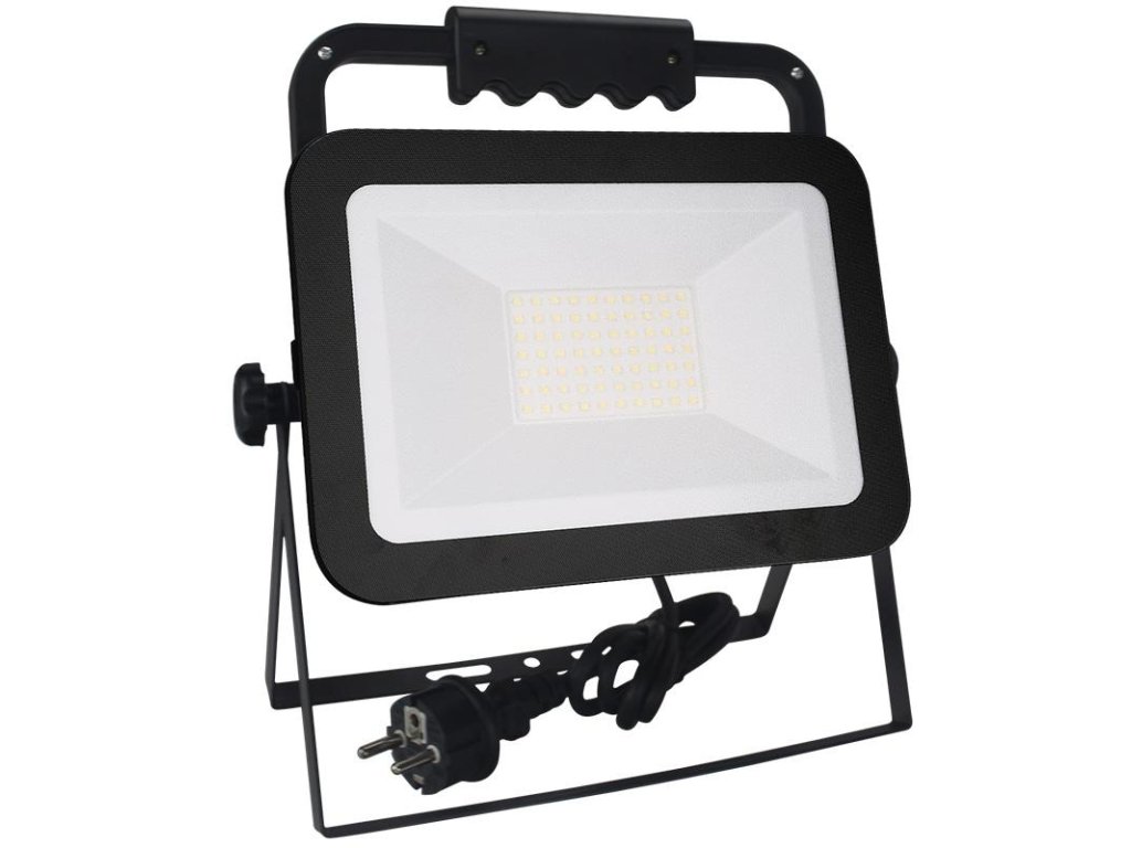 LED reflektor LF2024H v čiernej farbe, s výkonom 50W, svietivosťou 4500Lm a farbou svetla 4000K disponuje držiakom, stojanom a vysokokvalitným LED čipom.