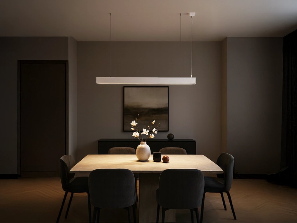 Hliníkový profil s dĺžkou 1,5 metra zabezpečuje vynikajúcu stabilitu a slúži ako efektívny pasívny chladič pre LED SMD čipy, čím výrazne predlžuje ich životnosť. Biely matný rám dokonale splýva so svetlými stropmi, zatiaľ čo mliečny difúzor z polykarbonátu eliminuje ostré tiene a oslnenie v širokom uhle 120°. Pre využitie inteligentných funkcií stačí svietidlo spárovať s voliteľným ovládačom RC7 alebo SP7, ktoré nájdete v našej ponuke príslušenstva.
