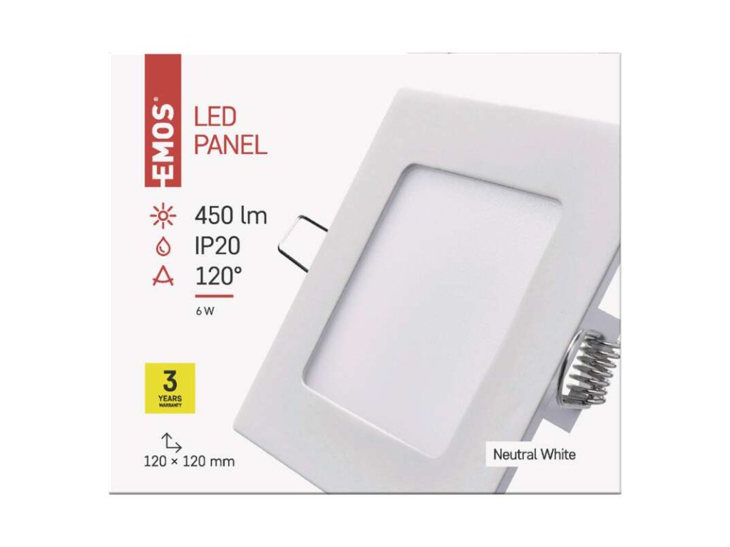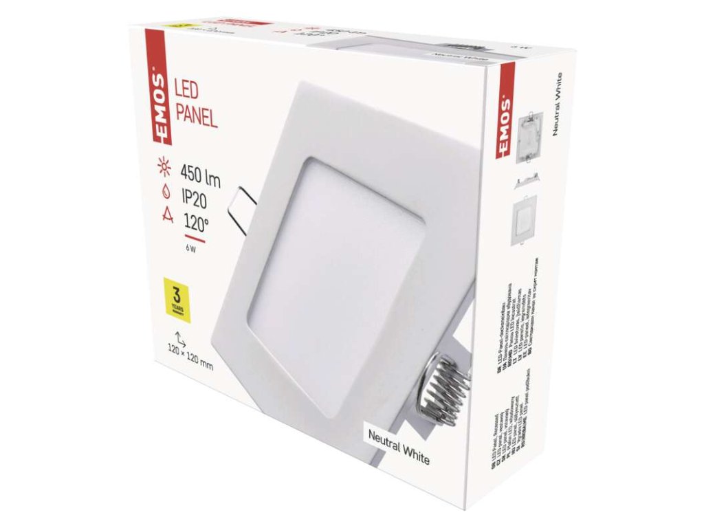 LED panel 120×120, štvorcový vstavaný biely, 6W neutrálna b. - ZD2122