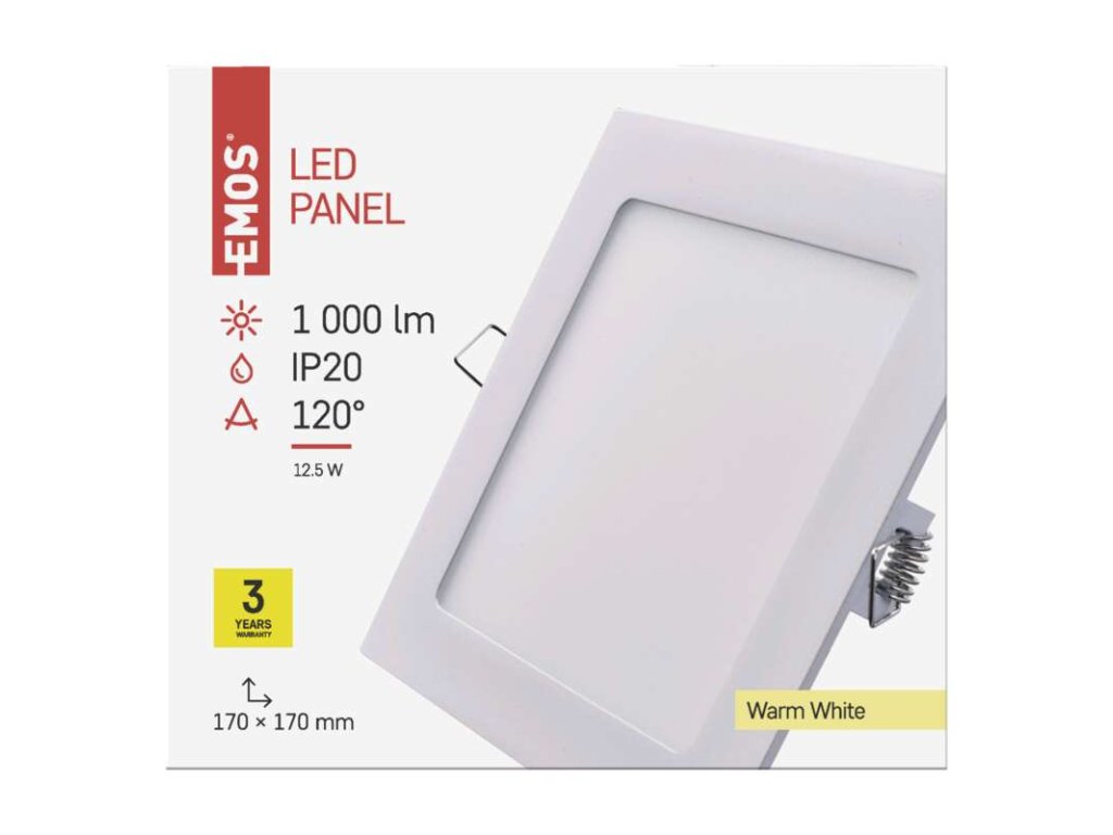 LED panel 170×170, štvorcový vstavaný biely,12,5W teplá biela - ZD2131