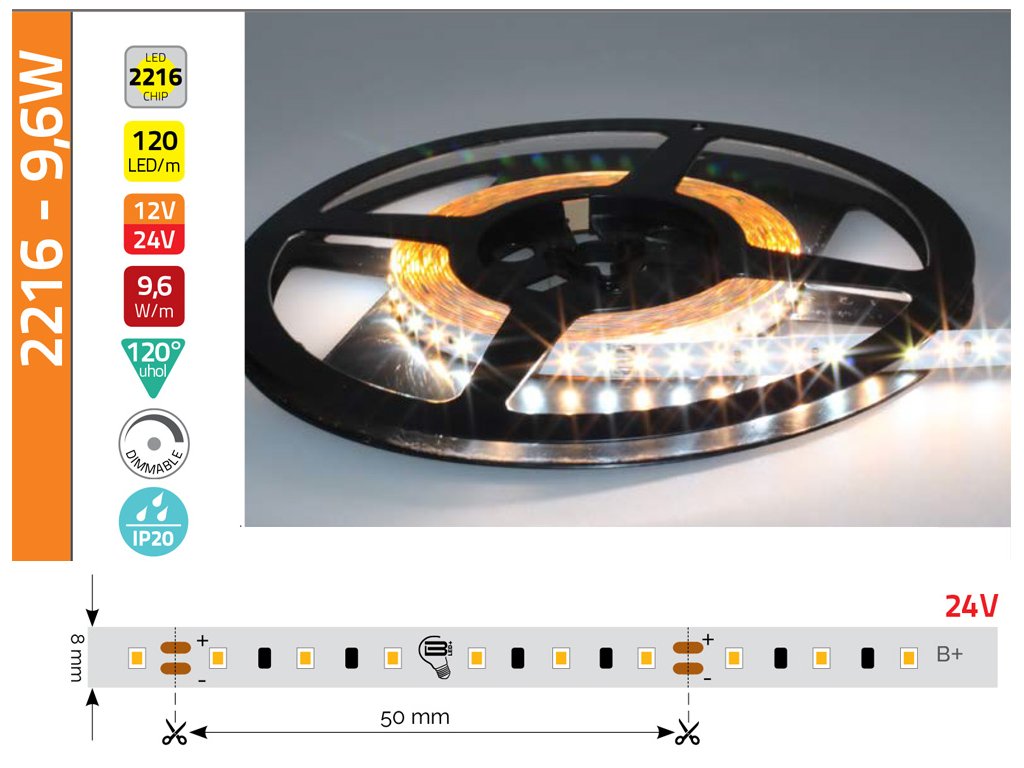 Typ LED čipu: SMD 2216 REFOND - 120 SMD/1meter