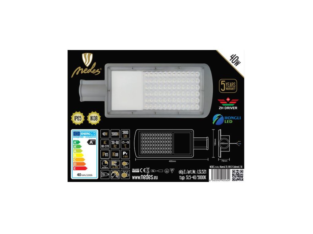 Asymetrické LED verejné osvetlenie, značky NEDES s neutrálnym bielym svetlom, poskytuje efektívne osvetlenie.