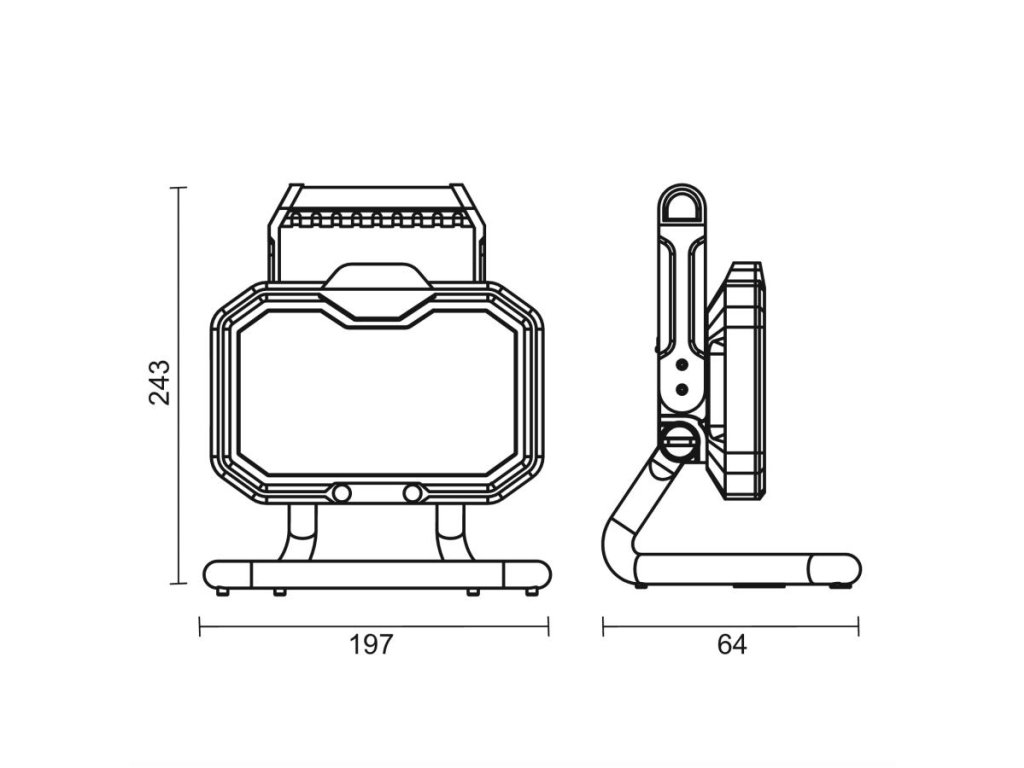 LED pracovné nabíjacie svietidlo značky NEDES s krytím IP54, je vhodné na použitie do exteriéru na osvetlenie rôznych plôch a interiéru do hál, tovární, garáží, altánkov a prístreškov.