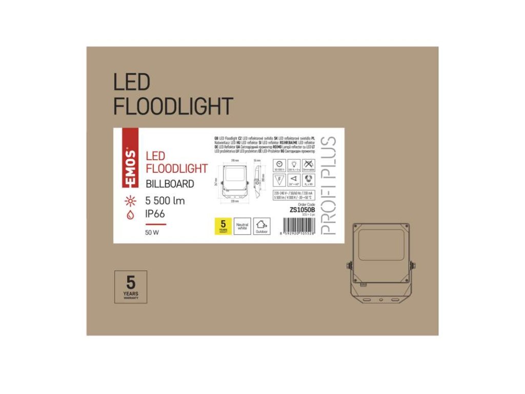 LED reflektor ASIMO billboard 50W, čierny, neutrálna biela - ZS1050B