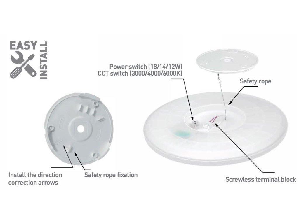 ☛ Montážne rozmery: Celkový priemer svietidla je 300 mm, uistite sa preto, že máte na strope či stene dostatok miesta pre túto prisadenú stropnicu.