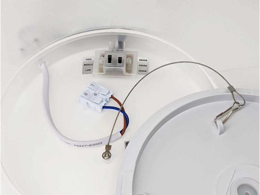 ⓘ Tip: Parametre výkonu a farby svetla nastavte pomocou prepínačov na zadnej strane ešte pred samotným nasadením svietidla na montážnu konzolu.