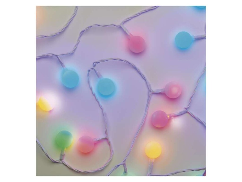 LED svetelná cherry reťaz – guličky 2,5cm, 4m, vonkajšia aj vnútorná, multicolor, časovač