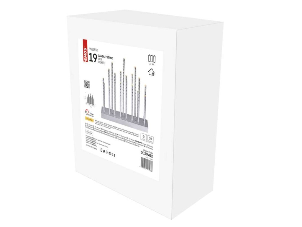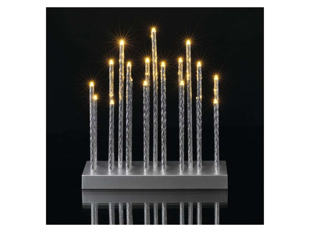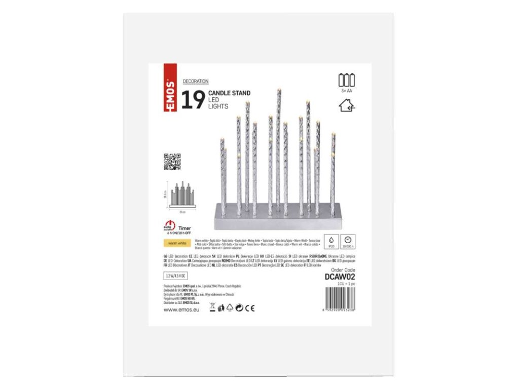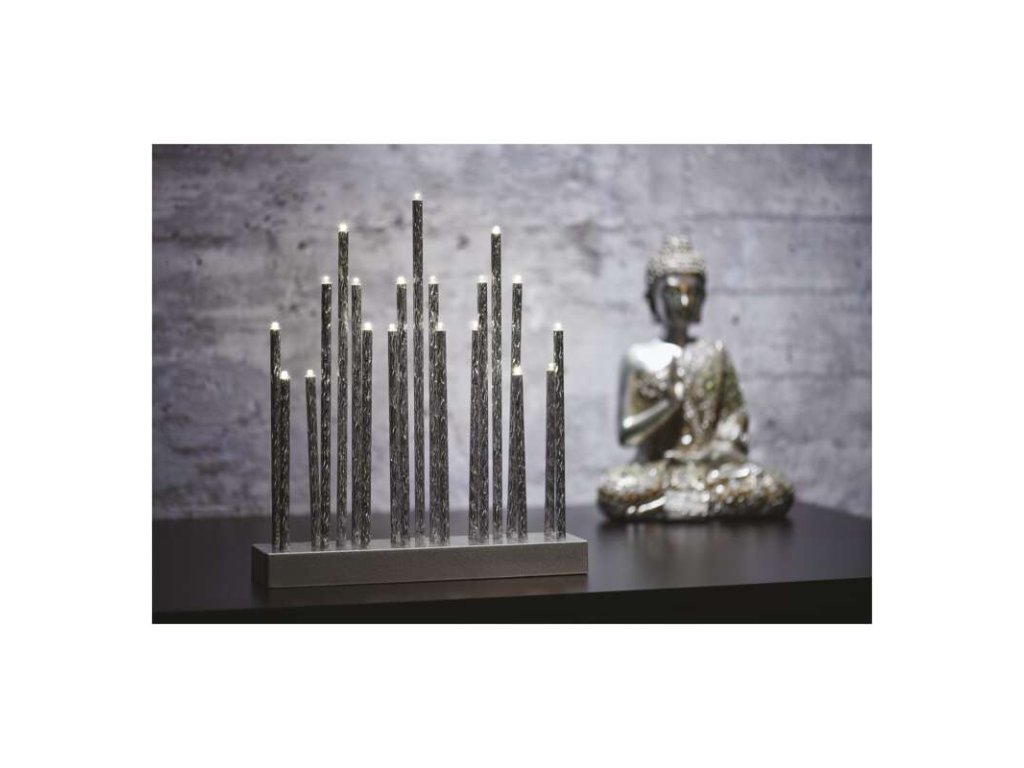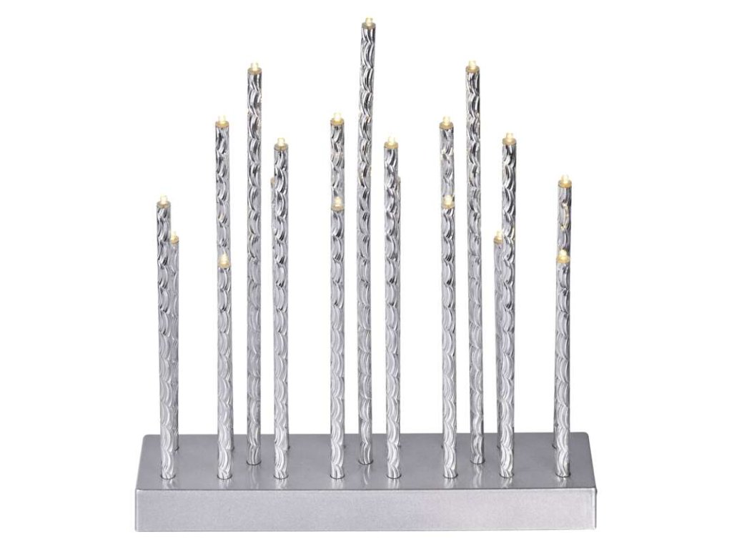 LED svietnik strieborný, 28,5 cm, 3x AA, vnútorný, teplá biela, časovač - DCAW02