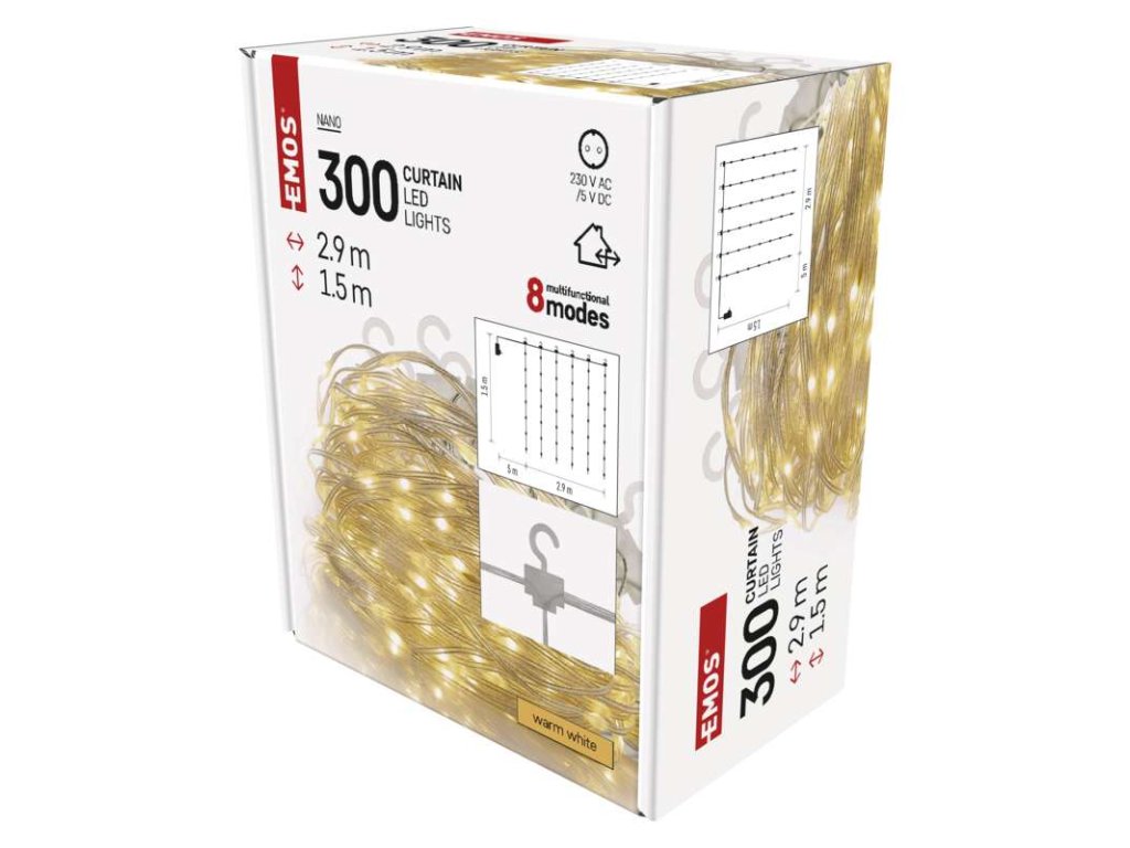 LED vianočná nano reťaz záclona 2,9x1,5m vonkajšia aj vnút. teplá biela programy D3EW03