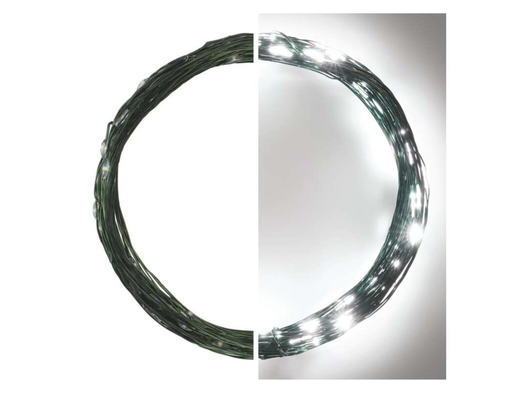 LED vianočná nano reťaz zelená, 7,5 m, vonkajšia aj vnútorná, studená biela, časovač