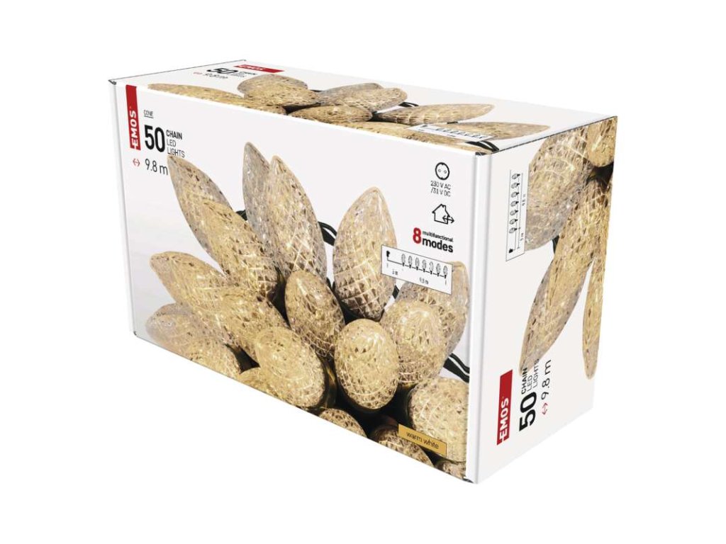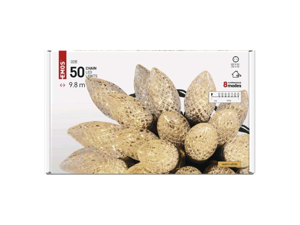 LED vianočná reťaz – šišky, 9,8 m, vonkajšia aj vnútorná, teplá biela, programy - D5ZW01