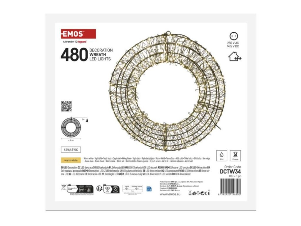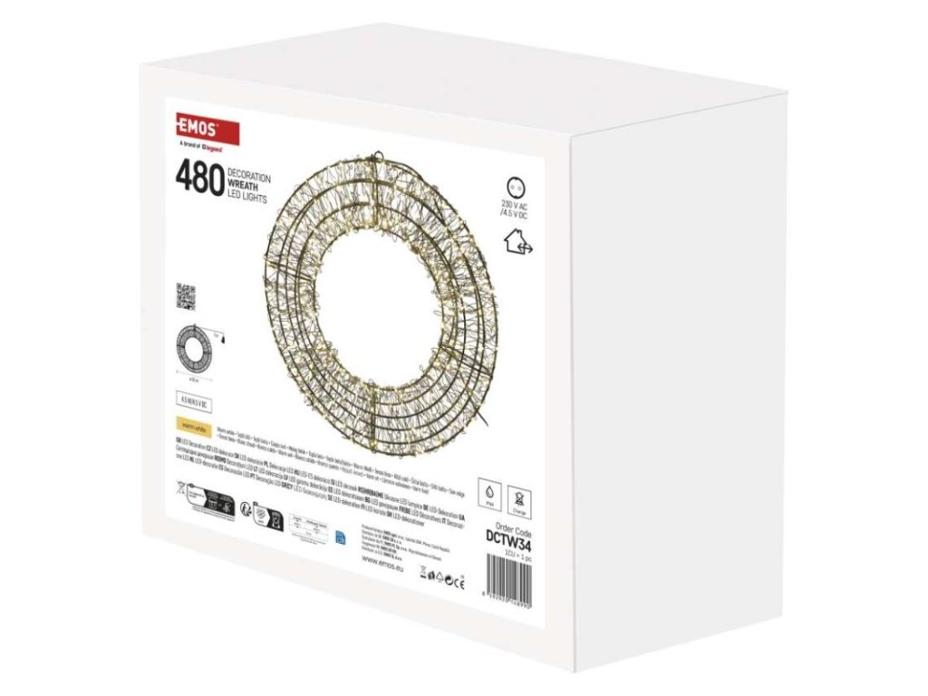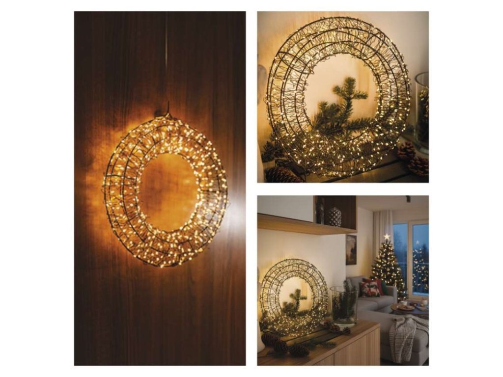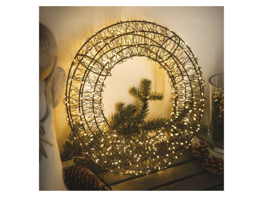 LED vianočný veniec – 480 LED, vonkajší aj vnútorný, teplá biela - DCTW34