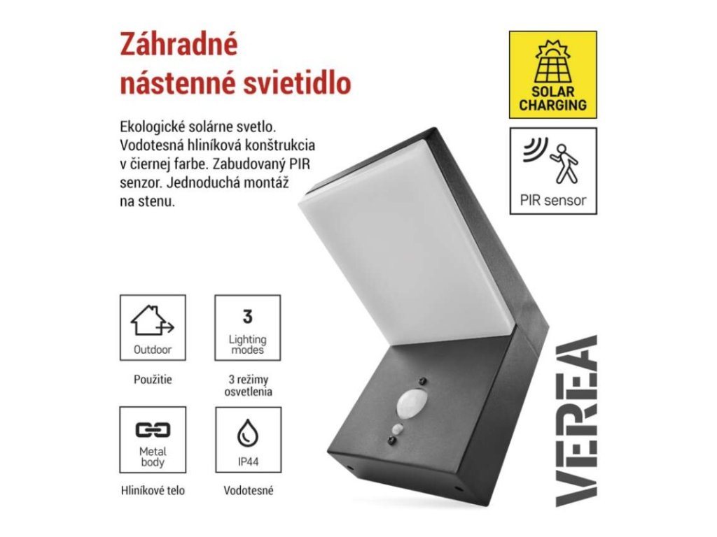 LED záhradné solárne nástenné svietidlo VEREA, senzor súmraku, 10,7 x 15,4 x 13 cm -ZGK04S