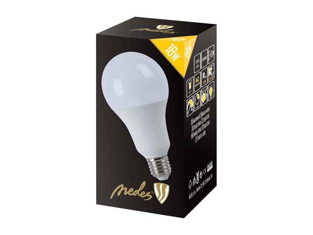 LED žiarovka značky NEDES je úsporná žiarovka so spotrebou 18W, svietivosťou 1830Lm, s päticou E27.