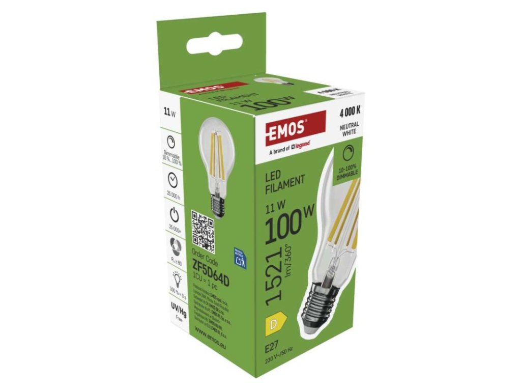 LED žiarovka Filament A60/ E27 / 11 W (100 W) / 1 521 lm / neutrálna biela / stmievateľné