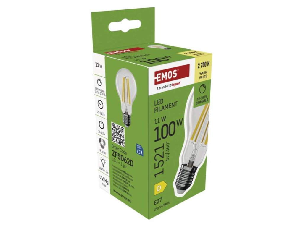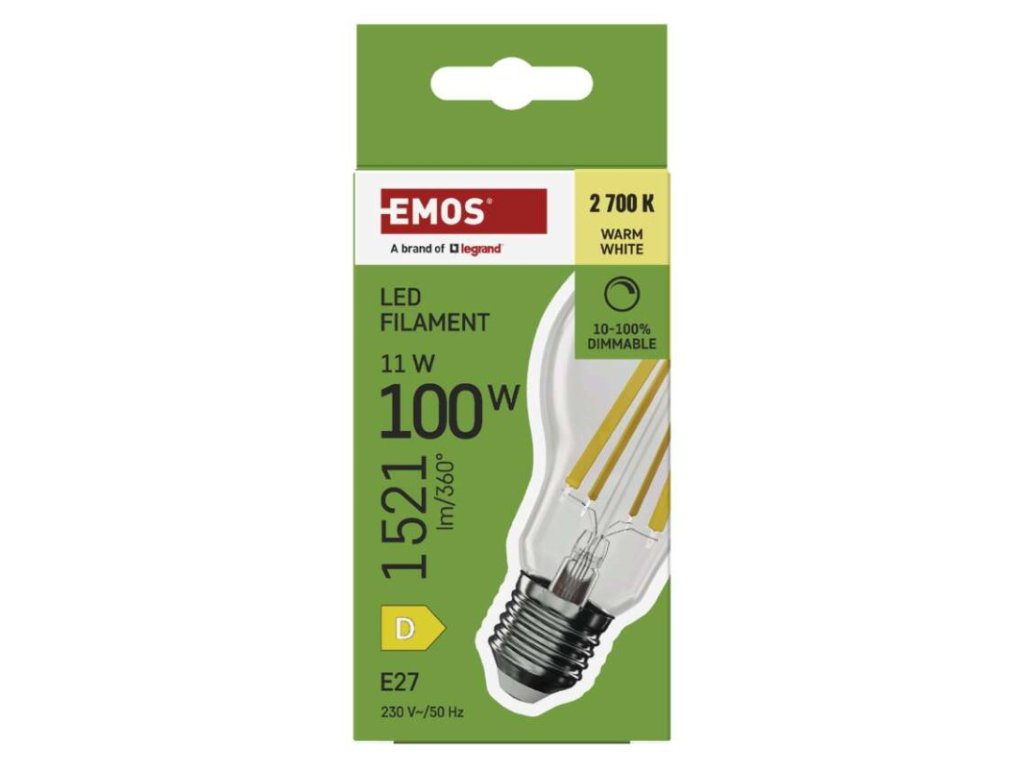 LED žiarovka Filament A60/ E27 / 11 W (100 W) / 1 521 lm / teplá biela / stmievateľné - ZF