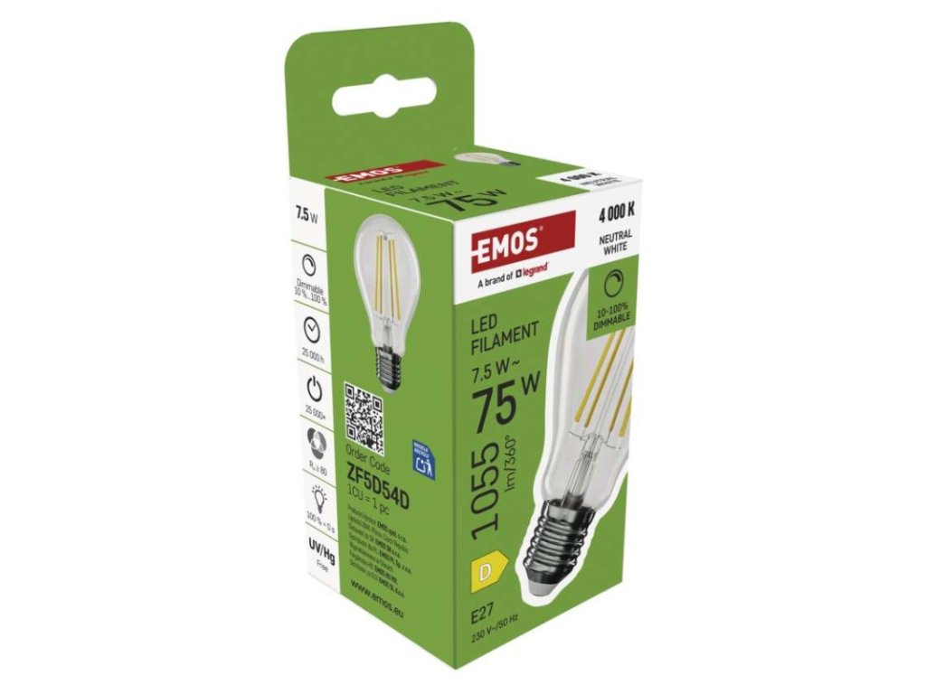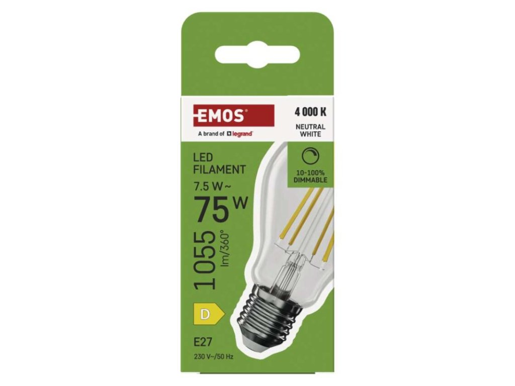 LED žiarovka Filament A60/ E27 / 7,5 W (75 W) / 1 055 lm / neutrálna biela / stmievateľné