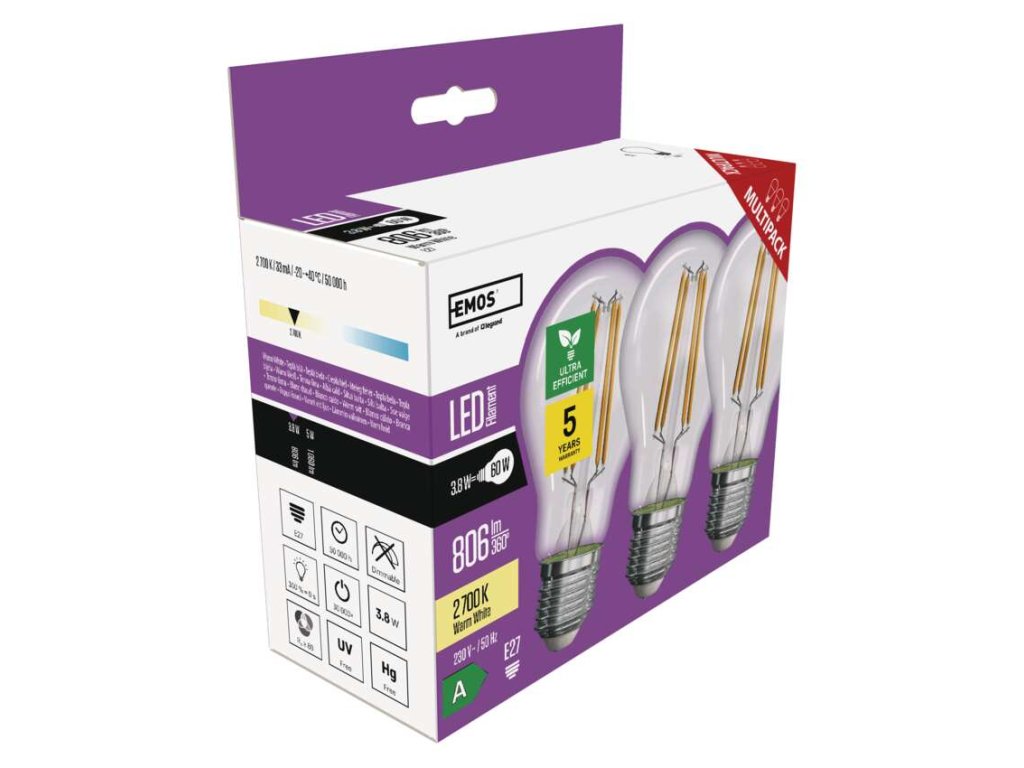 LED žiarovka Filament A60 / E27 / 3,8 W (60 W) / 806 lm / teplá biela - ZF5147.3