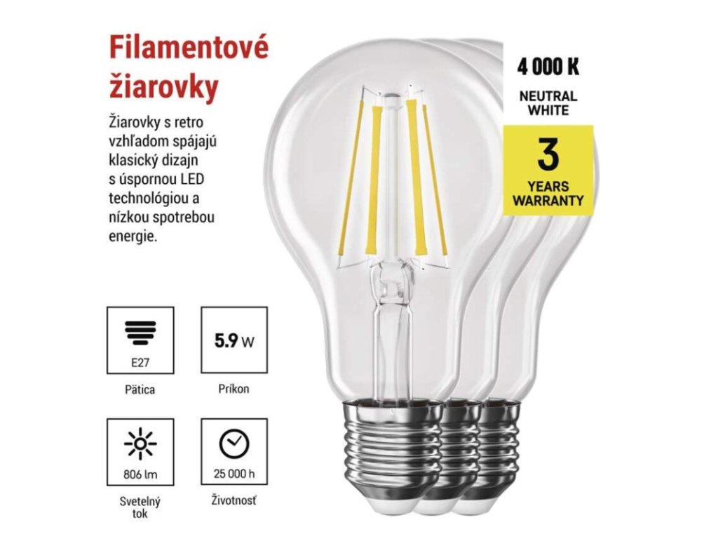 LED žiarovka Filament A60 / E27 / 5,9 W (60 W) / 806 lm / Neutrálna biela - ZF5D43.3