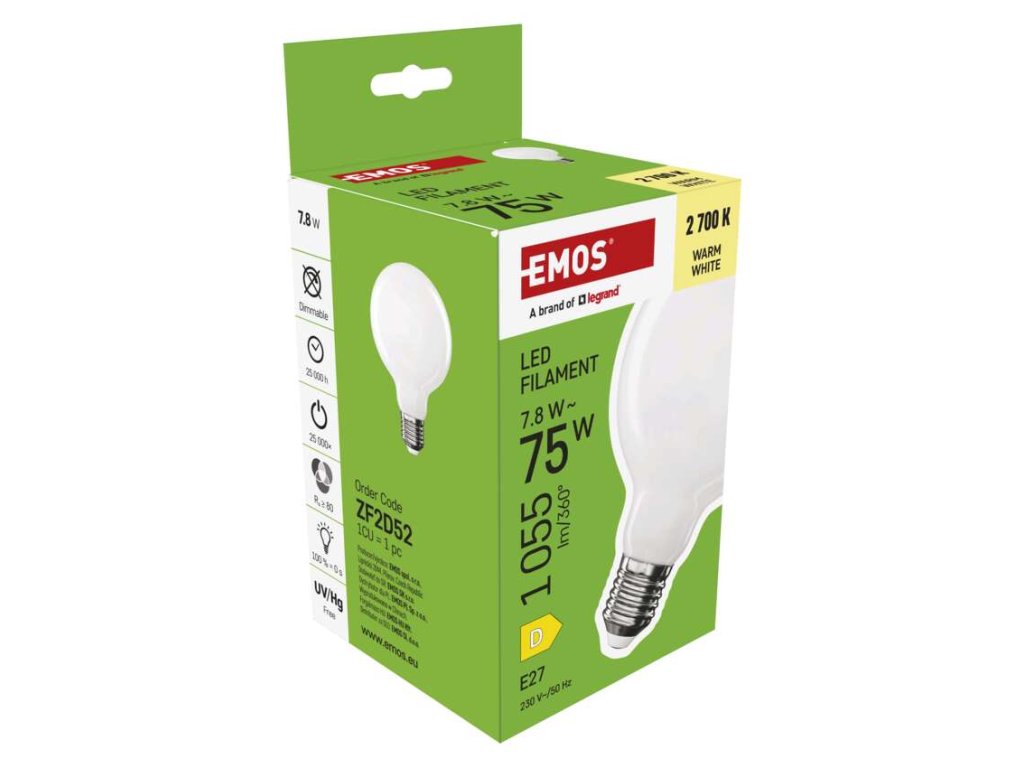 LED žiarovka Filament G95 / E27 / 7,8 W (75 W) / 1055 lm / Teplá biela - ZF2D52