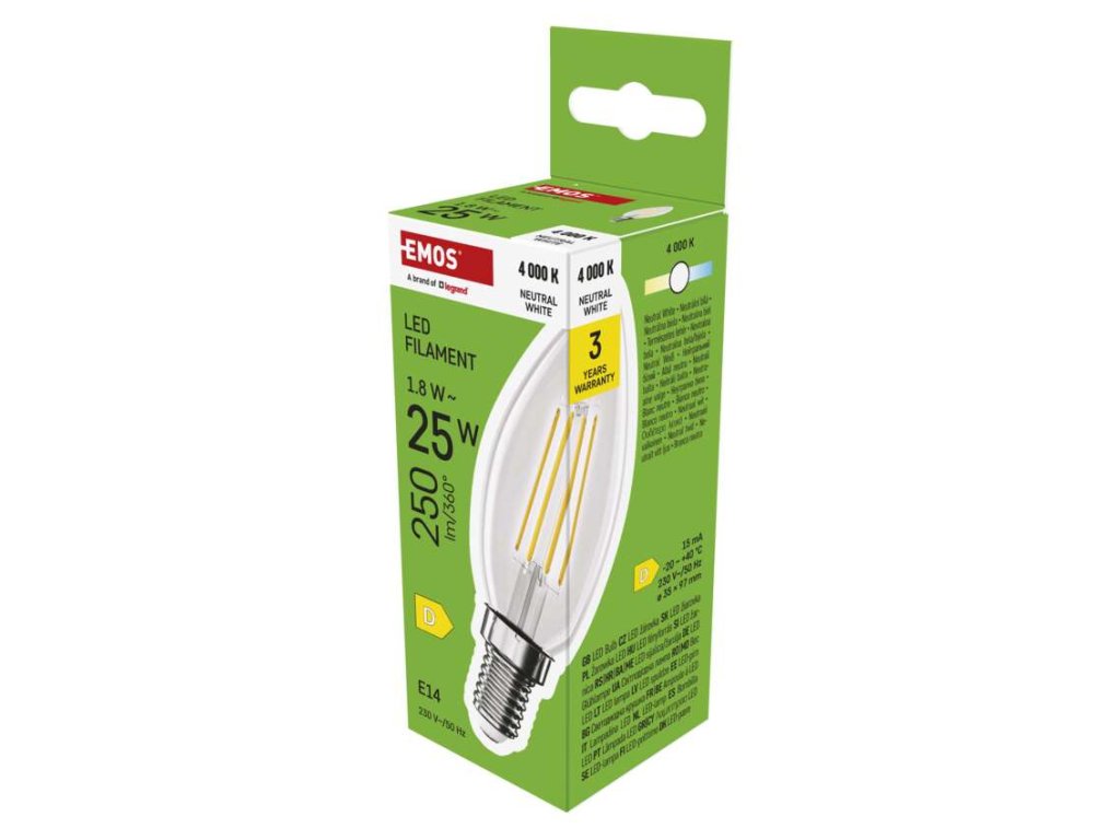 LED žiarovka Filament sviečka / E14 / 1,8 W (25 W) / 250 lm / Neutrálna biela - ZF3D03