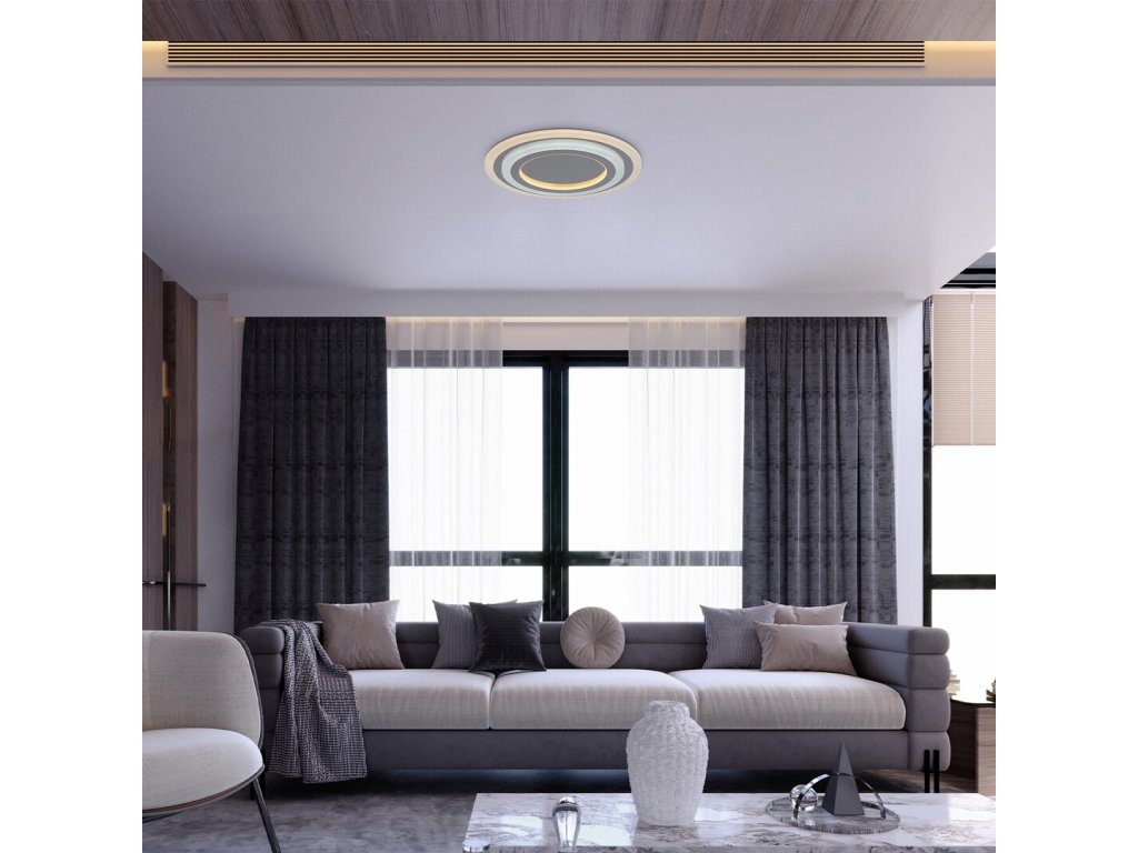 Rabalux Taneli 2 stropné svetlo je model navrhnutý spoločnosťou Rabalux. Je to ideálna voľba pre tých, ktorí hľadajú osvetlenie s výnimočnou intenzitou svetla a širokou škálou ďalších funkcií. Veľká lampa pozostáva z kovových eliptických prvkov v čiernej a zlatej farbe, s bielym akrylovým tienidlom. Zrkadlový efekt lampy ešte viac zdôrazňuje jej elegantný vzhľad a vytvára v miestnosti jedinečnú hru svetiel. Lampa má zabudovaný LED svetelný zdroj, ktorého teplotu farby je možné nastaviť v troch rôznych variantoch. Kruhové pásky okolo lampy robia zmenu teploty farby obzvlášť atraktívnou. Lampa je vybavená diaľkovým ovládačom, s ktorým môžete nastaviť nielen teplotu farby, ale aj jas, pamäť, časovač a funkciu nočného svetla. Toto multifunkčné stropné svetlo je ideálnou voľbou pre obývaciu izbu alebo spálňu. Vďaka LED technológii je tento model energeticky efektívny a má dlhú životnosť.