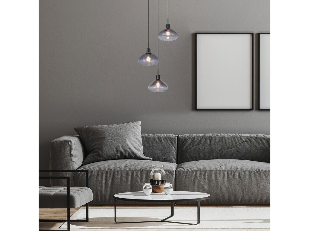 Moderné závesné svietidlo Dvora 72023 - matná čierna - dymová/ priehľadná