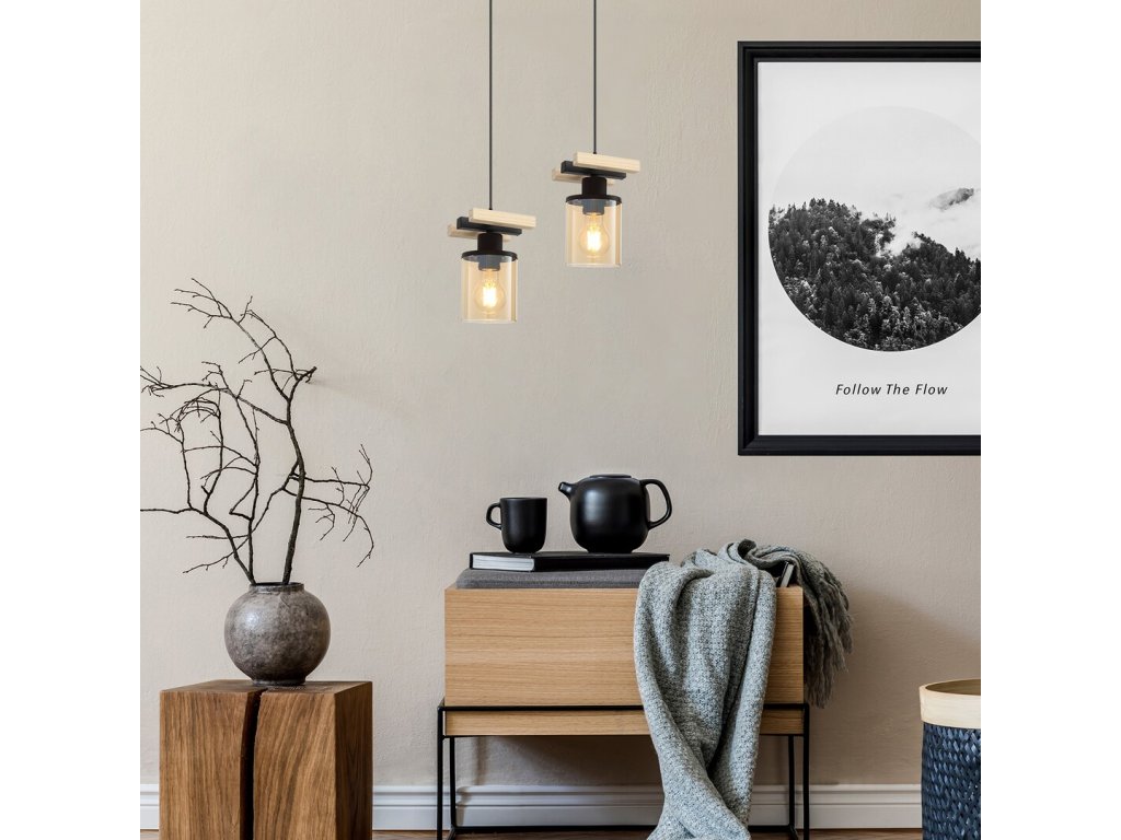 Moderné závesné svietidlo Niylah 72081 - čierna - jantár