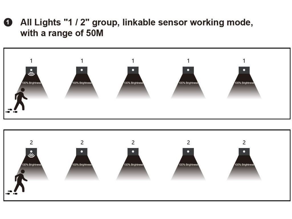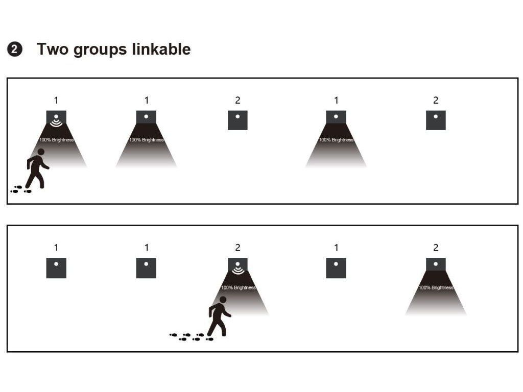 Ide o funkciu bezdrôtového skupinového spínania – ak zachytí pohyb ktorékoľvek svietidlo v skupine, cez RF signál sa okamžite rozsvietia všetky ostatné.