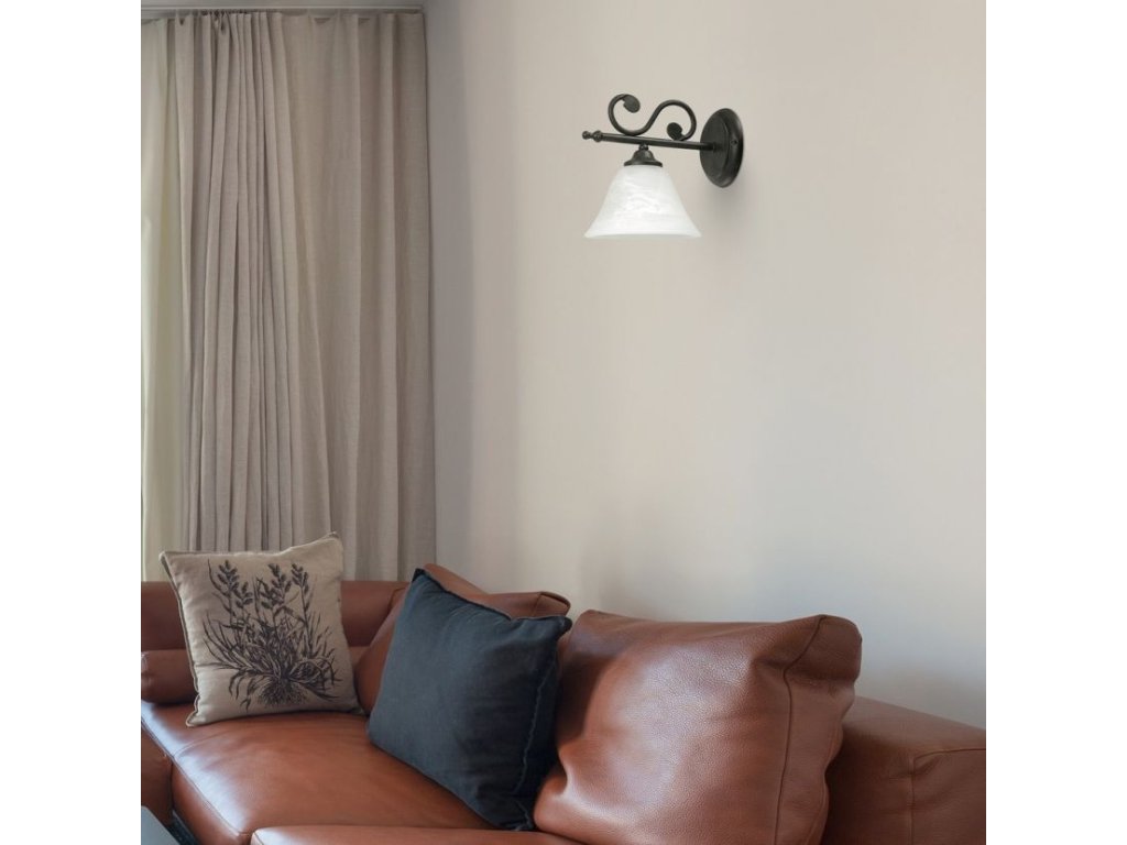Mediteránske nástenné svietidlo Dorothea 7771 - matná čierna - biele alabastrové sklo