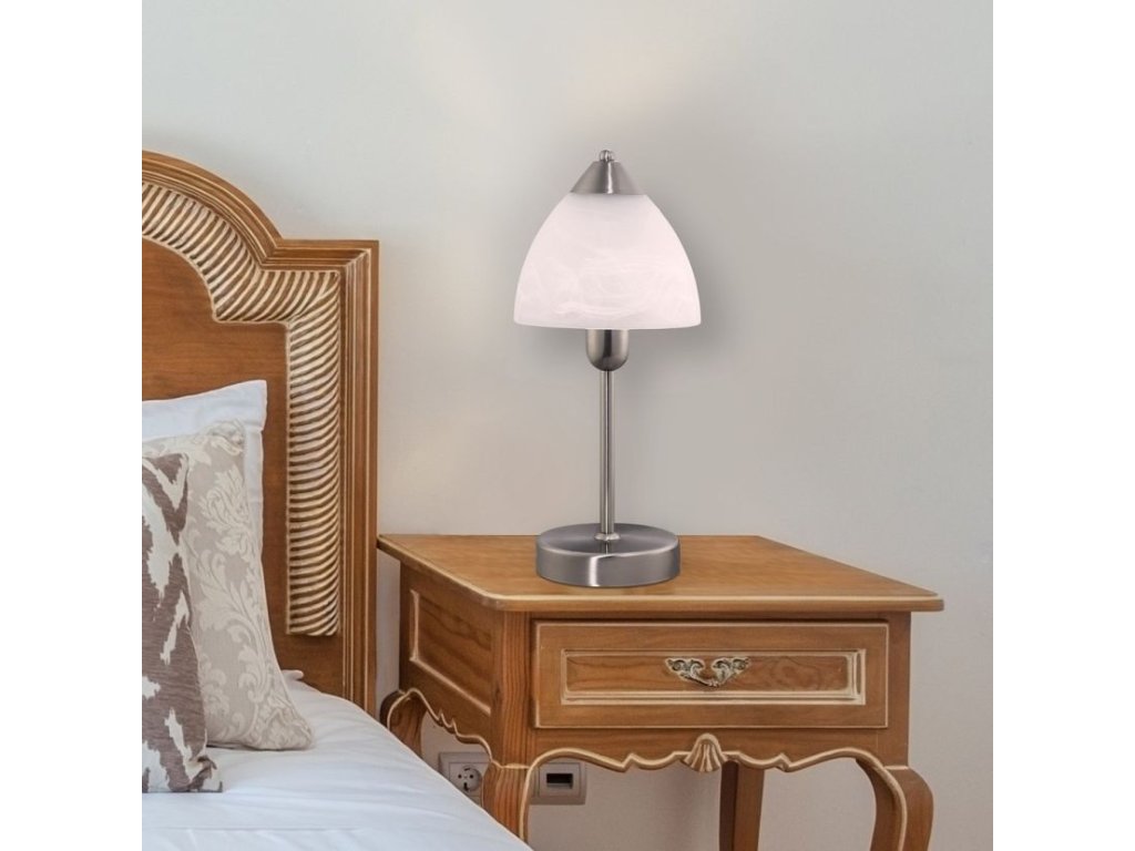 Nočné lampa Tristan 7202 - saténová chrómová - biele alabastrové sklo
